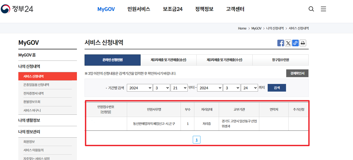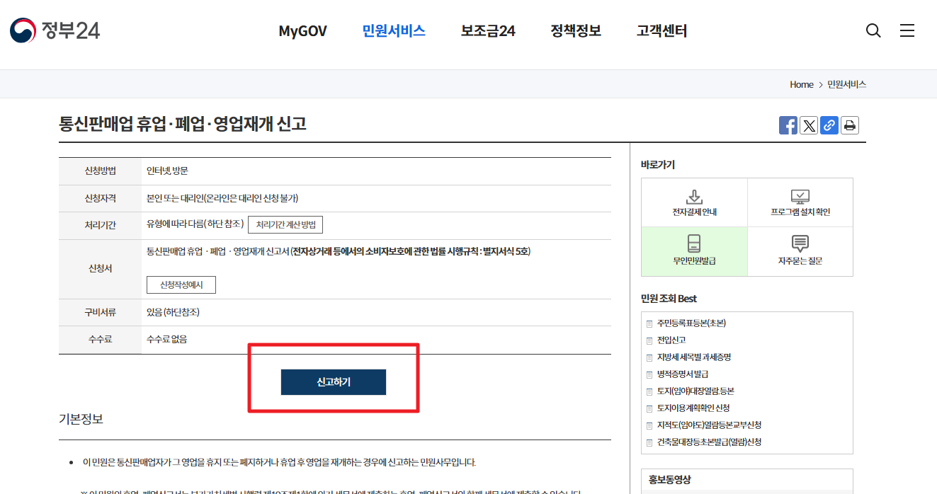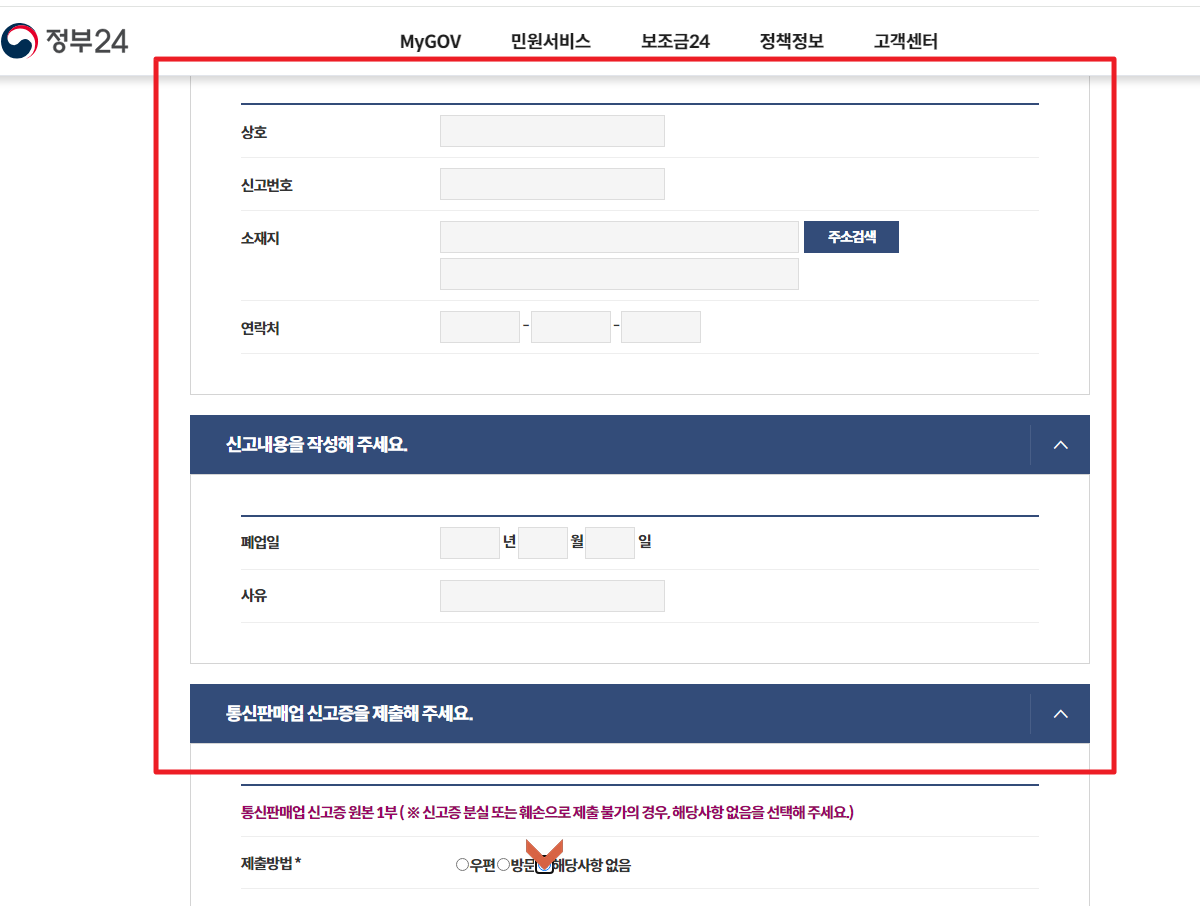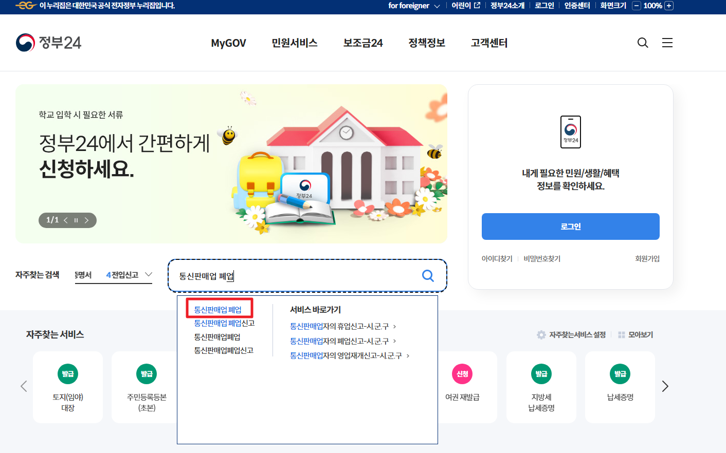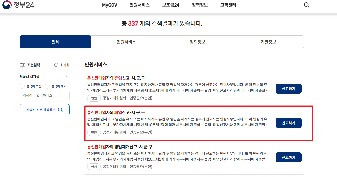 ① 정부24에 접속해서 통신판매업 폐업을 검색합니다
