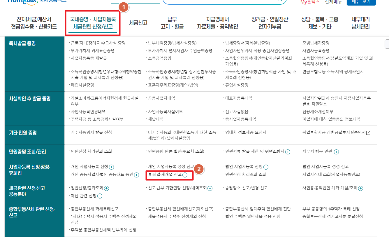 1. 사업자 등록 폐업 신고 (홈텍스)
