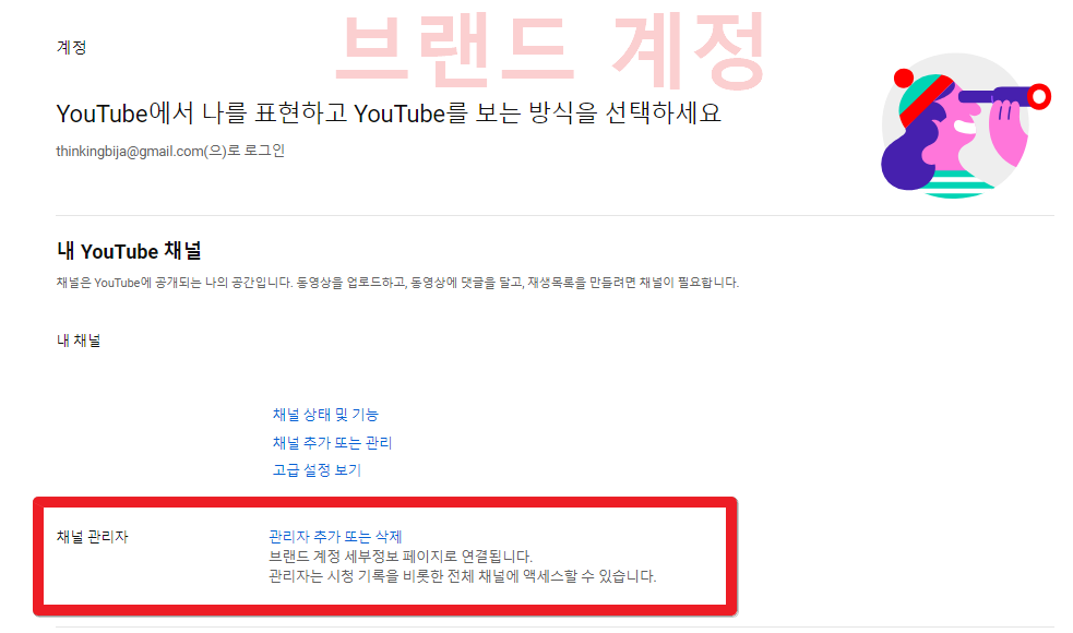 그러면 현재 가지고 있는 채널이 브랜드 계정인지 확인하려면